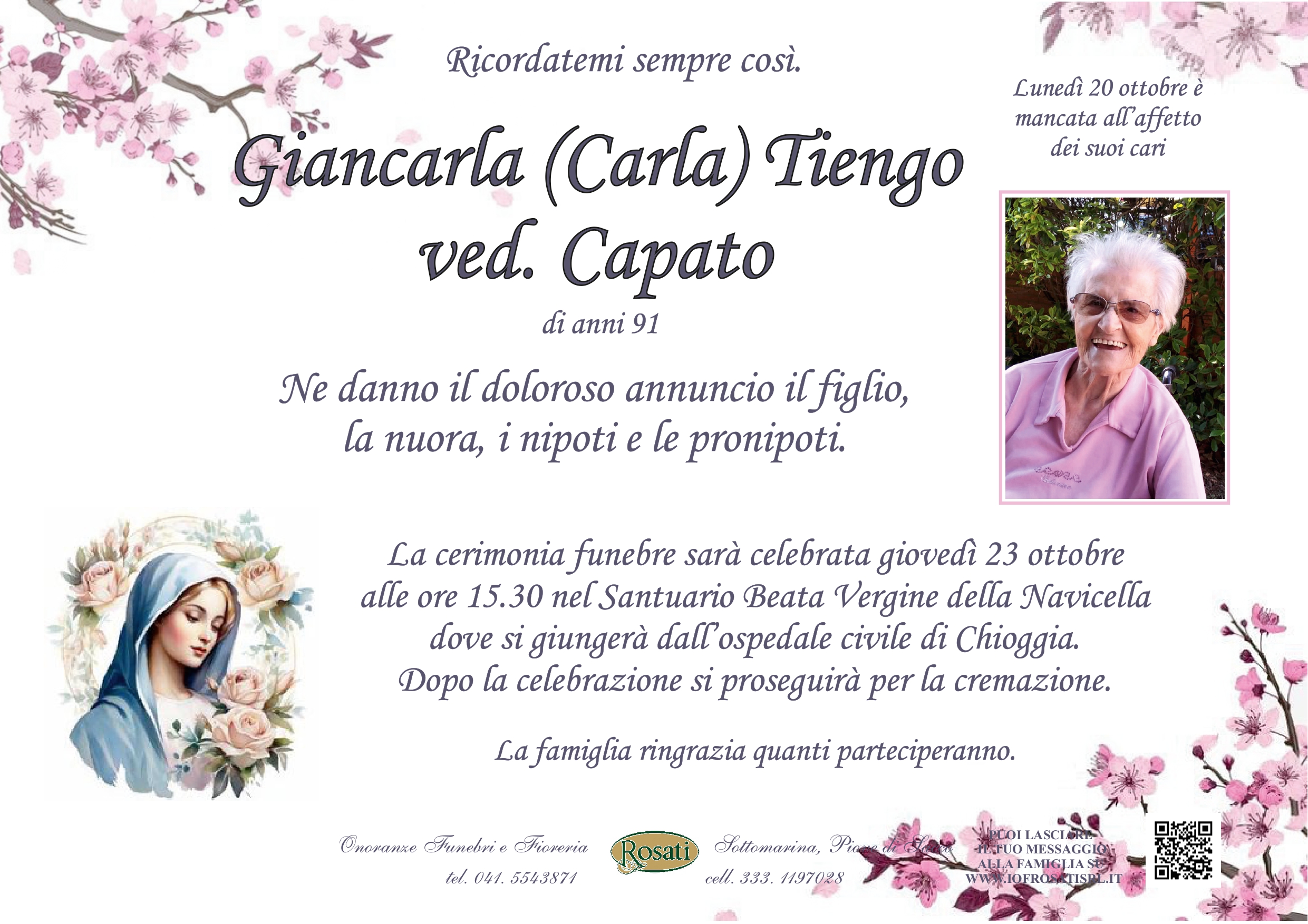 Invia il tuo messaggio di condoglianze ai famigliari del defunto.